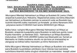 TAARIFA KWA UMMA.